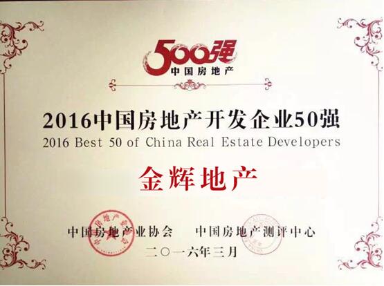 3月22日,在中國房地產(chǎn)業(yè)協(xié)會(huì)和中國房地產(chǎn)測(cè)評(píng)中心聯(lián)合舉辦的“2016中國房地產(chǎn)500強(qiáng)測(cè)評(píng)成果發(fā)布會(huì)暨500強(qiáng)峰會(huì)”上,金輝憑借優(yōu)異的銷售去化能力和良好的綜合實(shí)力,正式躍升中國房地產(chǎn)42強(qiáng)!